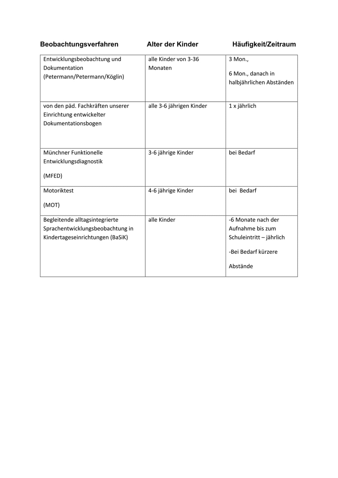 · Die Dokumentation der Beobachtungen ist Grundlage für die Planung weiterer pädagogischer Ansätze.